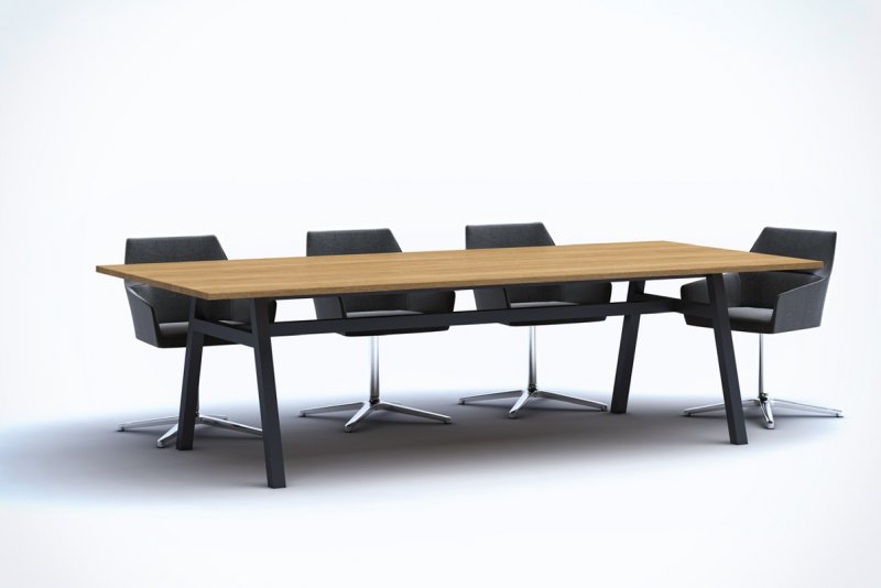 Stoły A łączą w sobie funkcjonalność z nowoczesnością. Niebanalny design sprawia, że wyróżniają się spośród mebli konferencyjnych. Dostępność blatów w szerokiej gamie materiałów, połączone z solidnymi, metalowym nogami, w kilku opcjach materiałowych daje nam uniwersalny stół do każdej sali konferencyjnej. Zastosowanie w blacie wstawki ze szkła piaskowanego dodaje smaku i elegancji