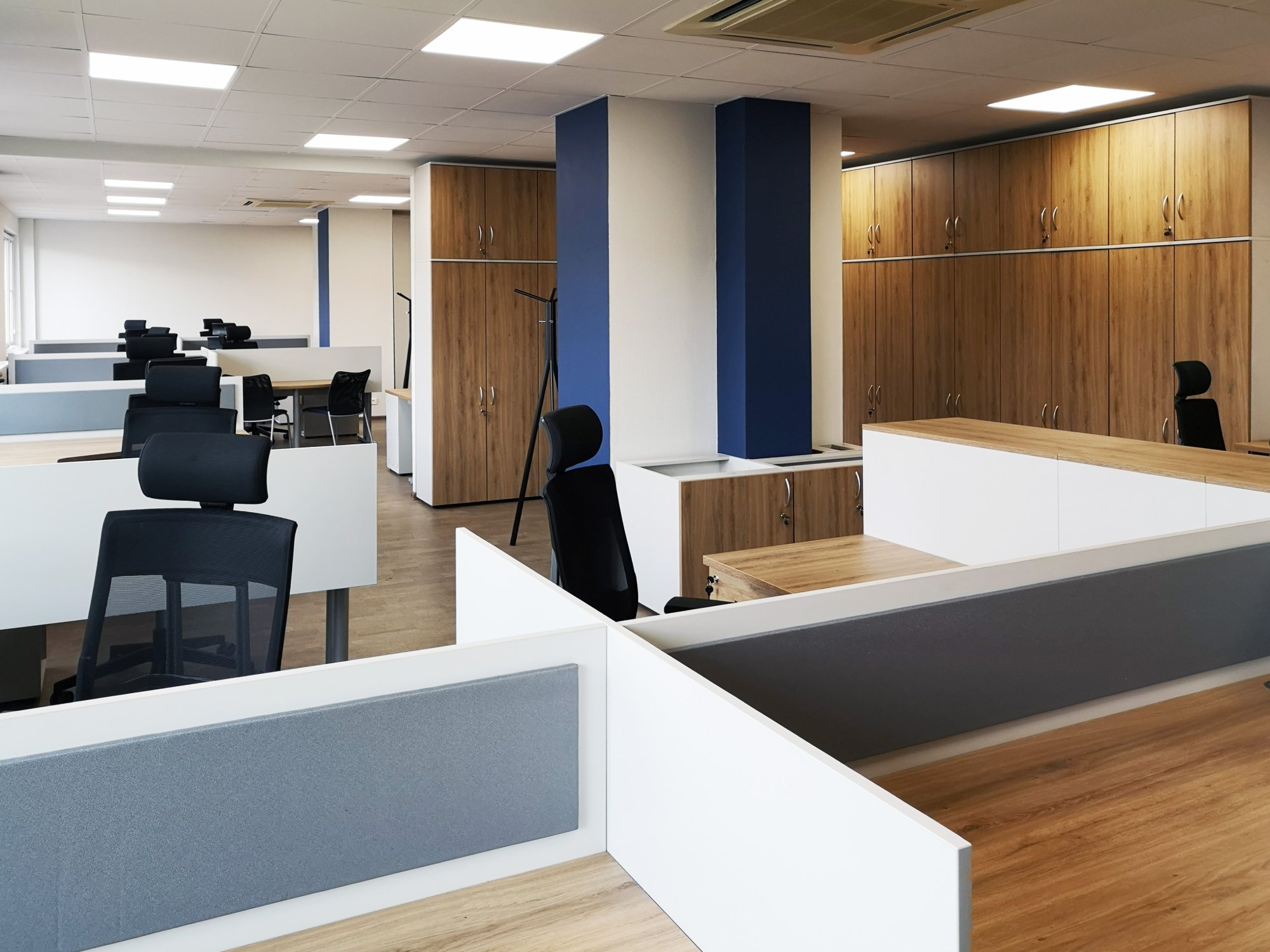 Projekt i realizacja wnętrza biurowego dla 24 pracowników.